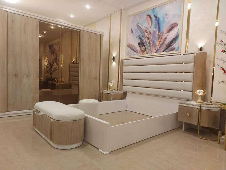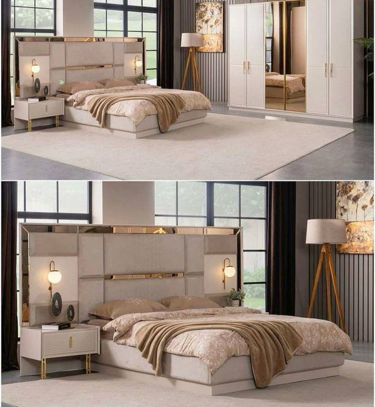 تنجيد أسرة النوم (الخلفيات) بأقمشة مخملية تعطي طابعاً فندقياً.