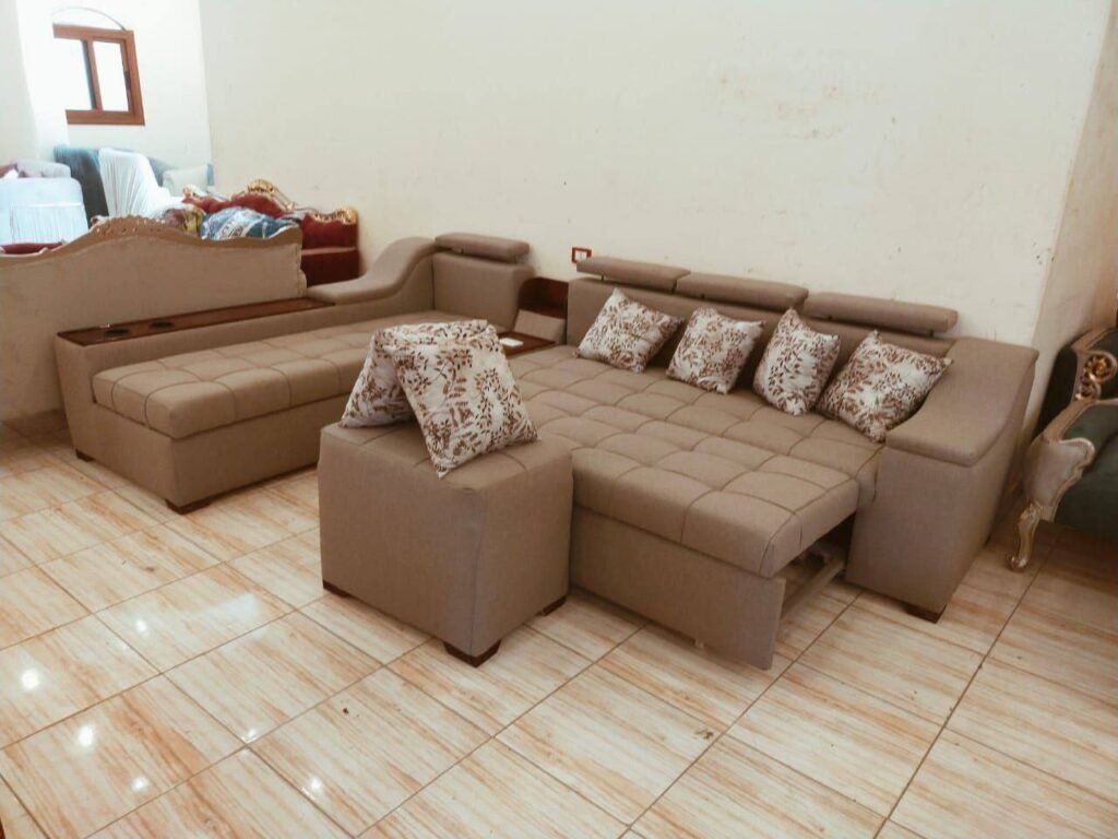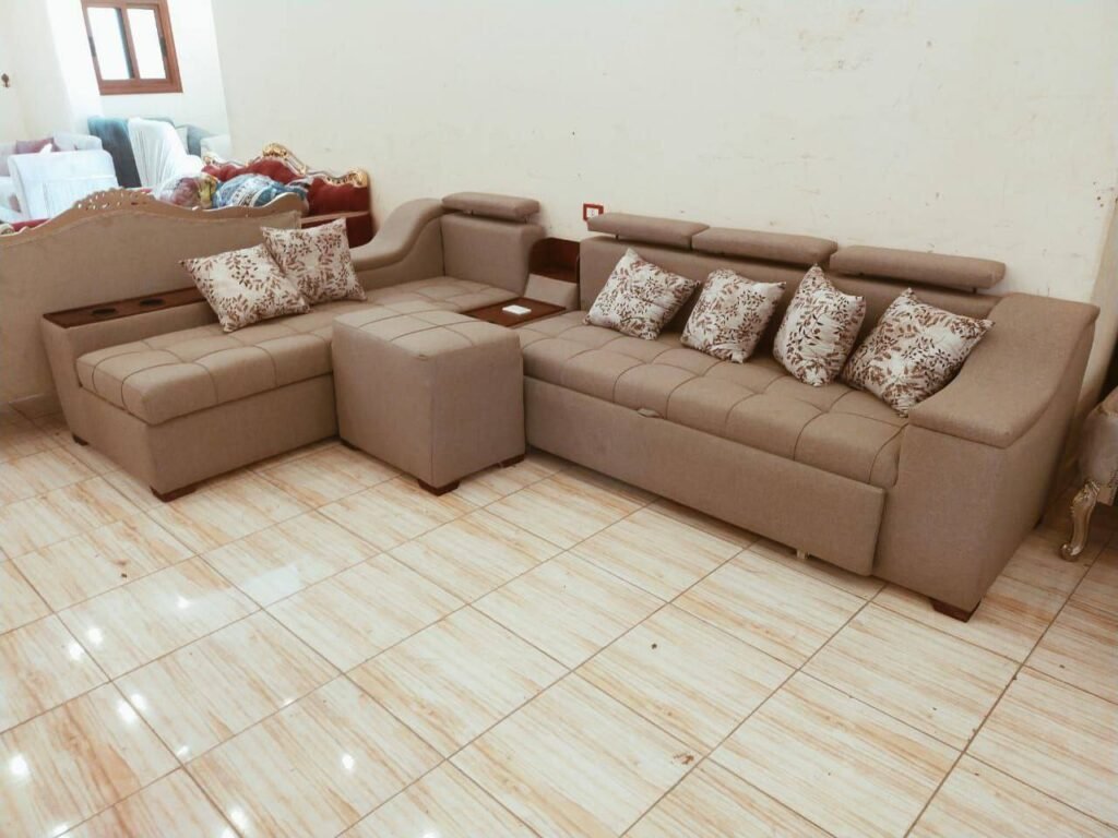 تغيير أقمشة الكنب المتهالكة وصنفرة ودهان القوائم الخشبية الظاهرة.